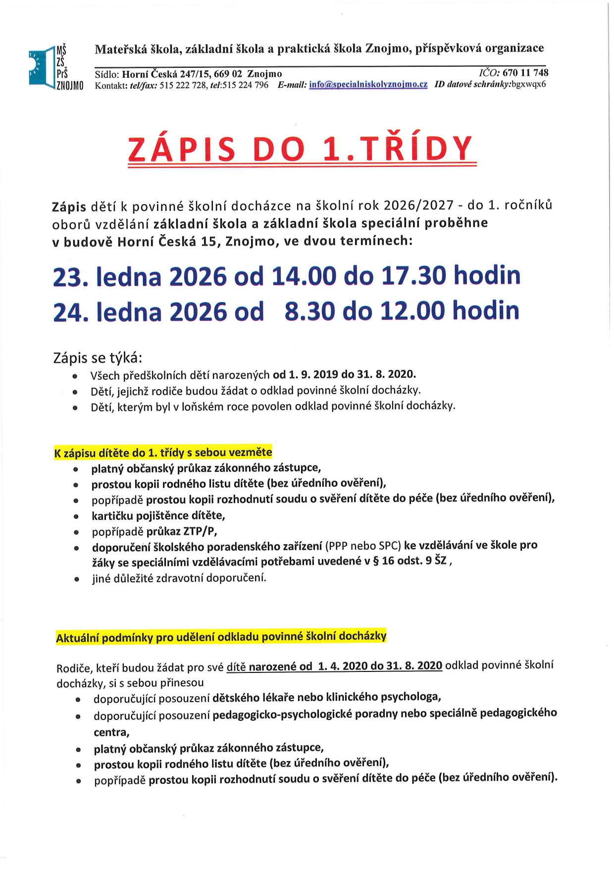 Zápis do 1. třídy