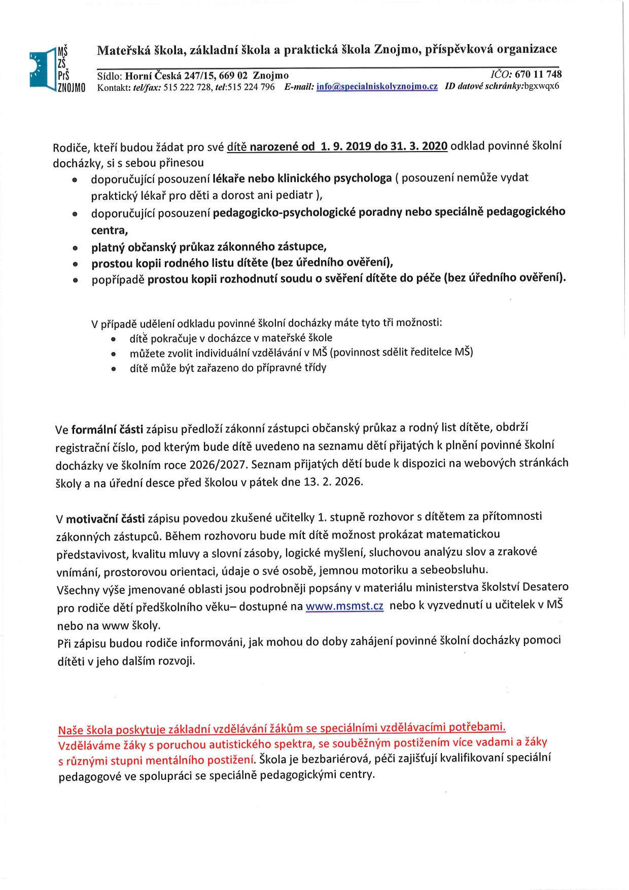 Školní rok 2025/2026