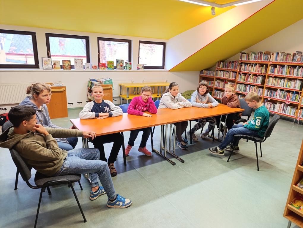 Seznámení dětí s knihovnou. Vysvětlení pojmu knihovna. Jak jsou knihy rozděleny a jak je najít. Jak se správně chovat ke knihám. Povídání o podzimu.