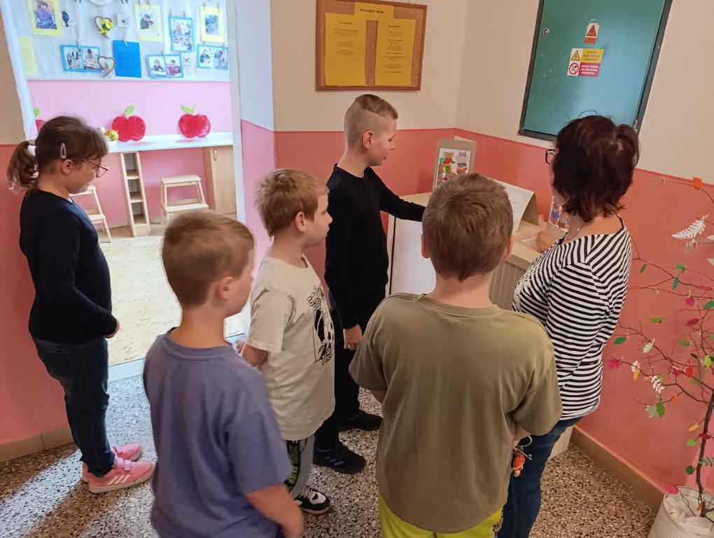 1. celoškolní projekt v rámci Výchovy demokratického občana( VDO). Společně jsme ve třídě hlasovali pro oblíbené zvíře. Pomáhala nám v tom želva "Želvíra"..Dokonce jsme si vytvořili na dnešní volební den i občanské průkazy.