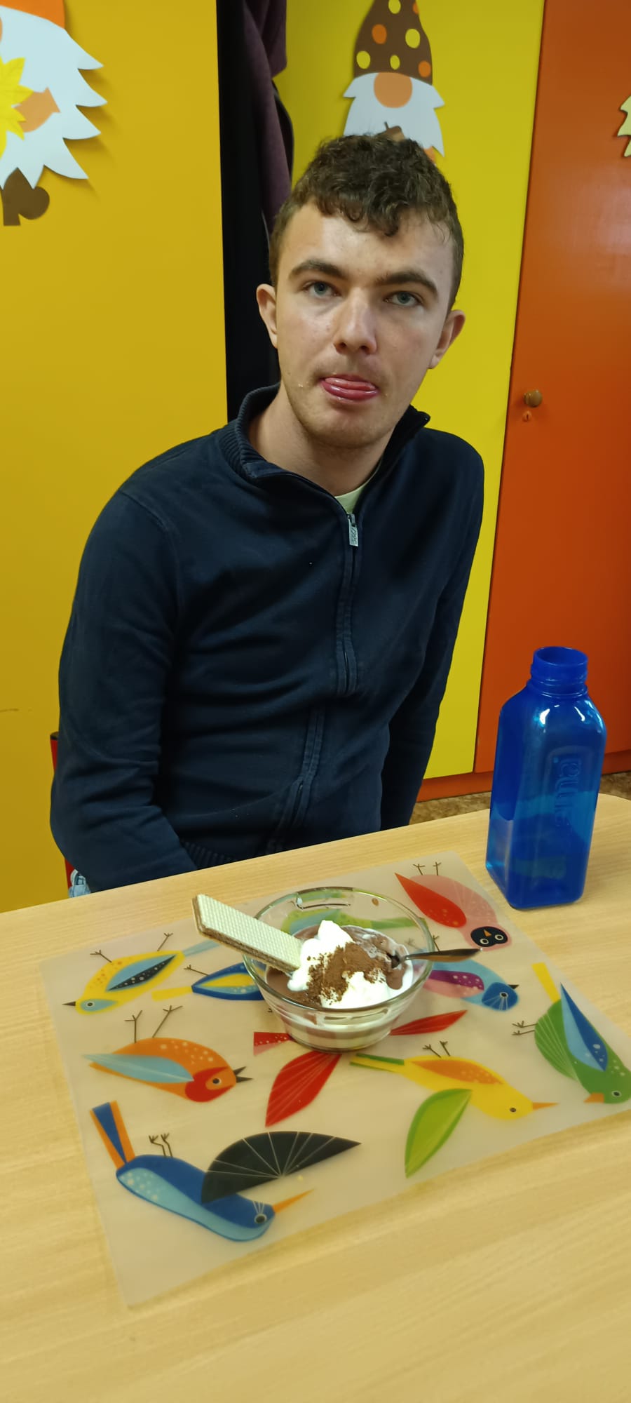 Dnešní chod: Tvarohový pudink s piškoty a ovocem.