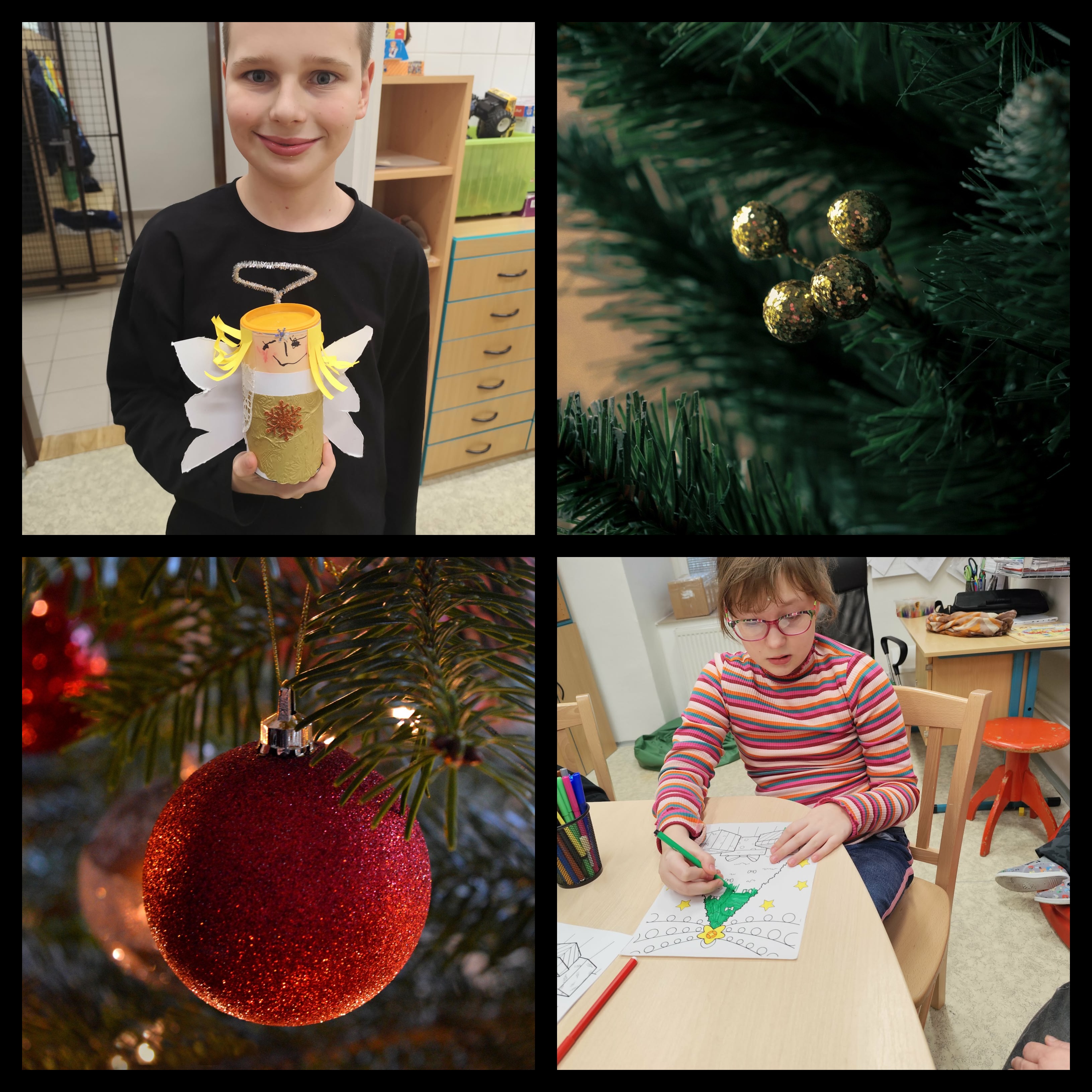 V družině malujeme vánoční stromečky a v kroužku Šikulka si děti vyráběly anděla.