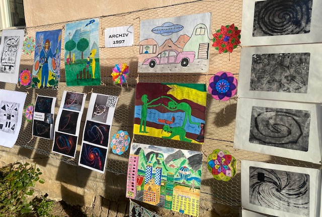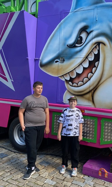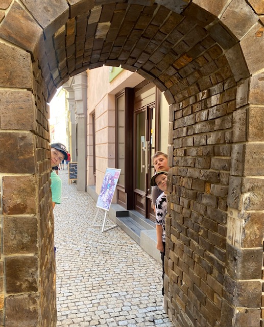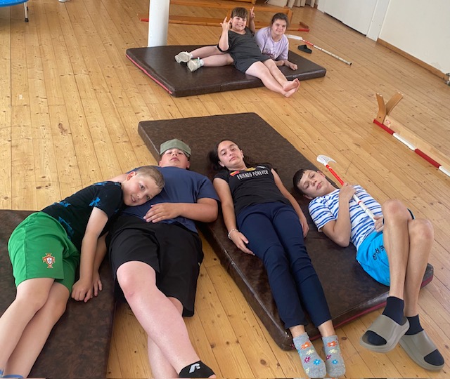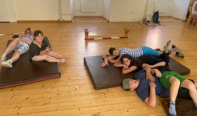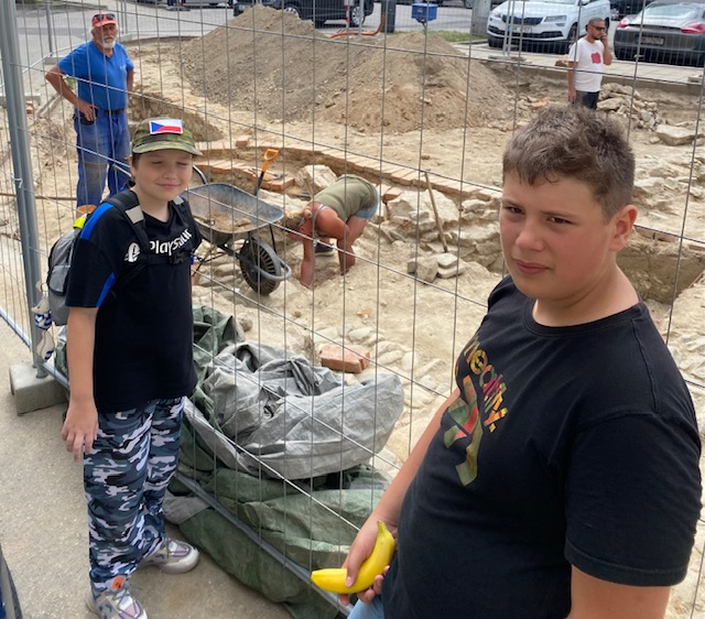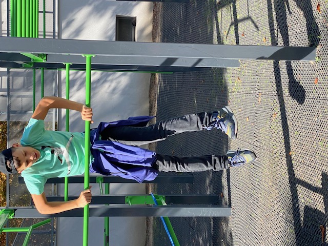 Byli jsme si na hřišti trochu protáhnot těla, ostatní jsou ve stínu.