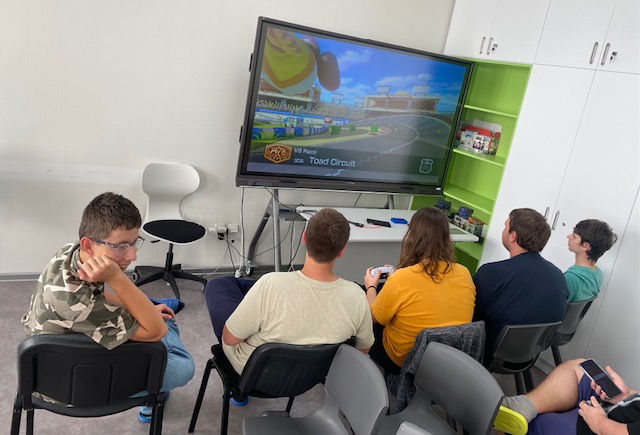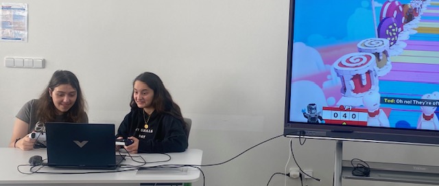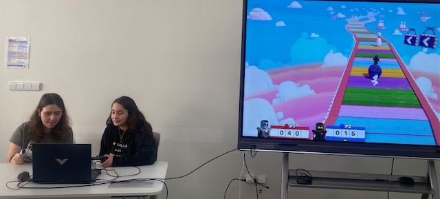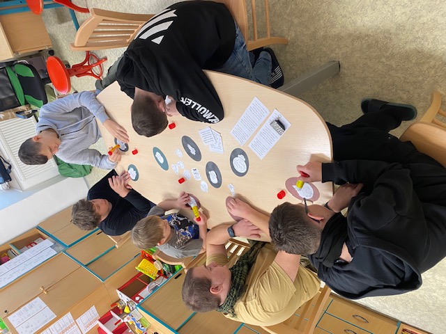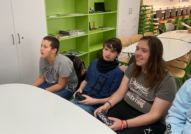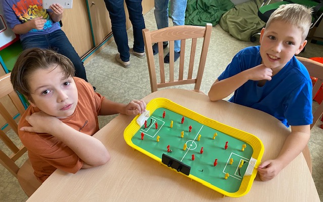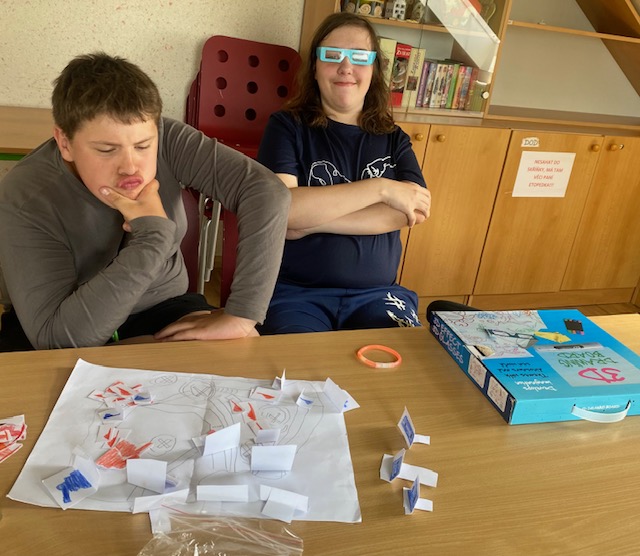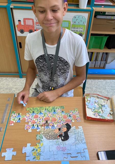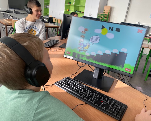Jakmile jsme splnili úkol na počítači, tak jsme mohli jít hrát-soutěžit ve dvojicích, to bylo ale napětí ...