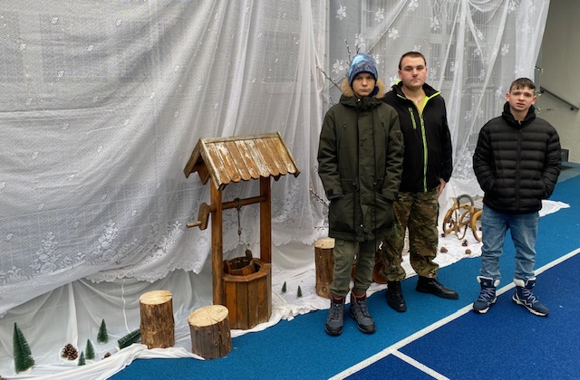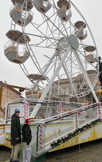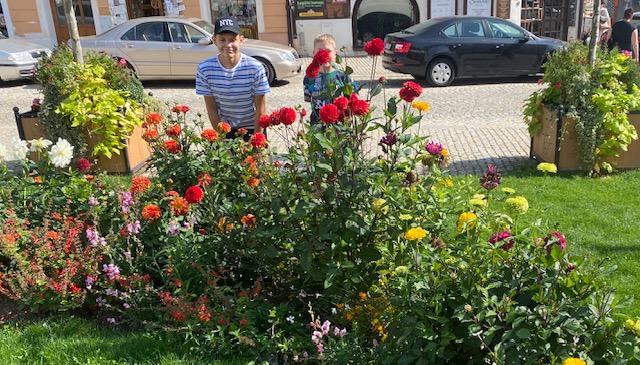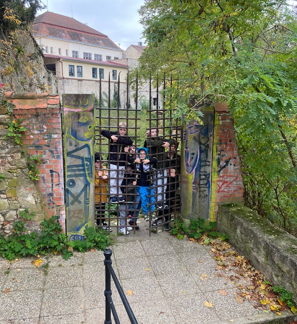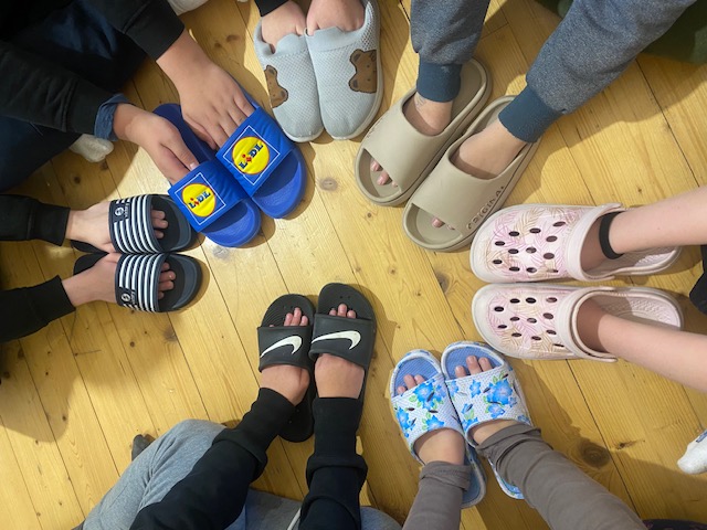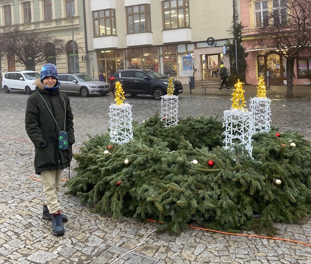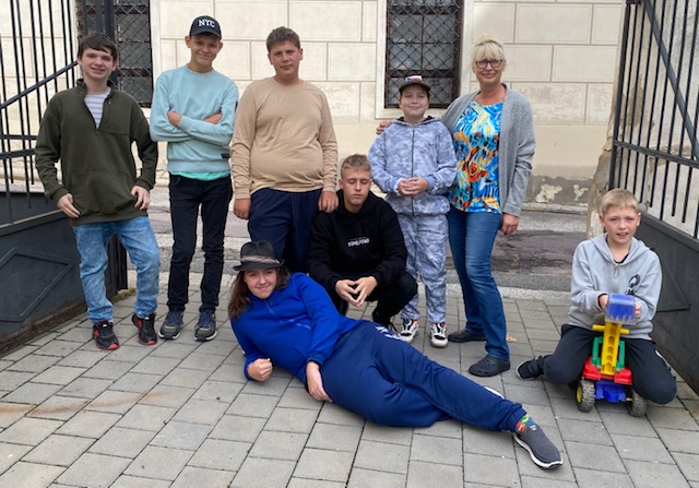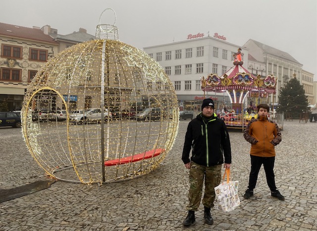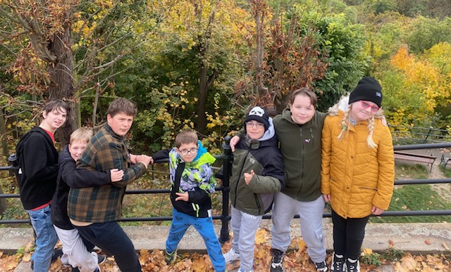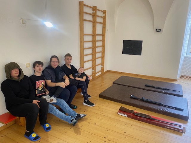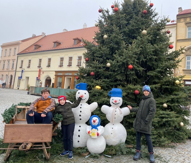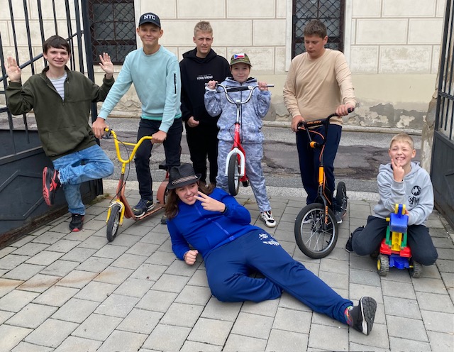 Nejdříve foto na uvítanou po víkendu, vyndat koloběžky, jít pro helmy a jízda může začít.