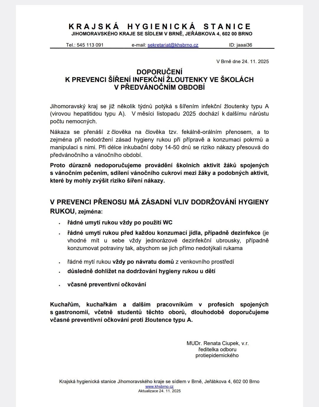 24.11. - Krajská hygienická stanice - STOP žloutence - doporučení