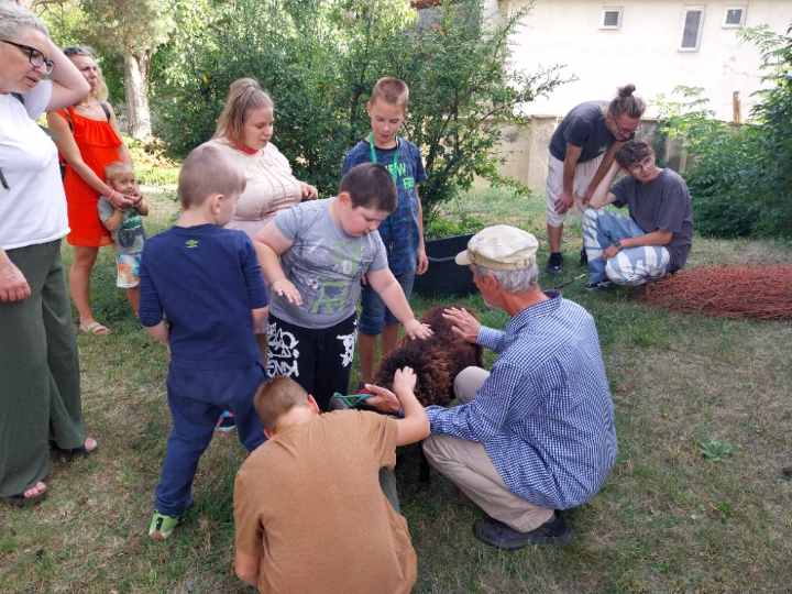 Žáci si mohli pohladit a nakrmit zvířátka, chodit s nimi na vodítku a ostříhat beránka