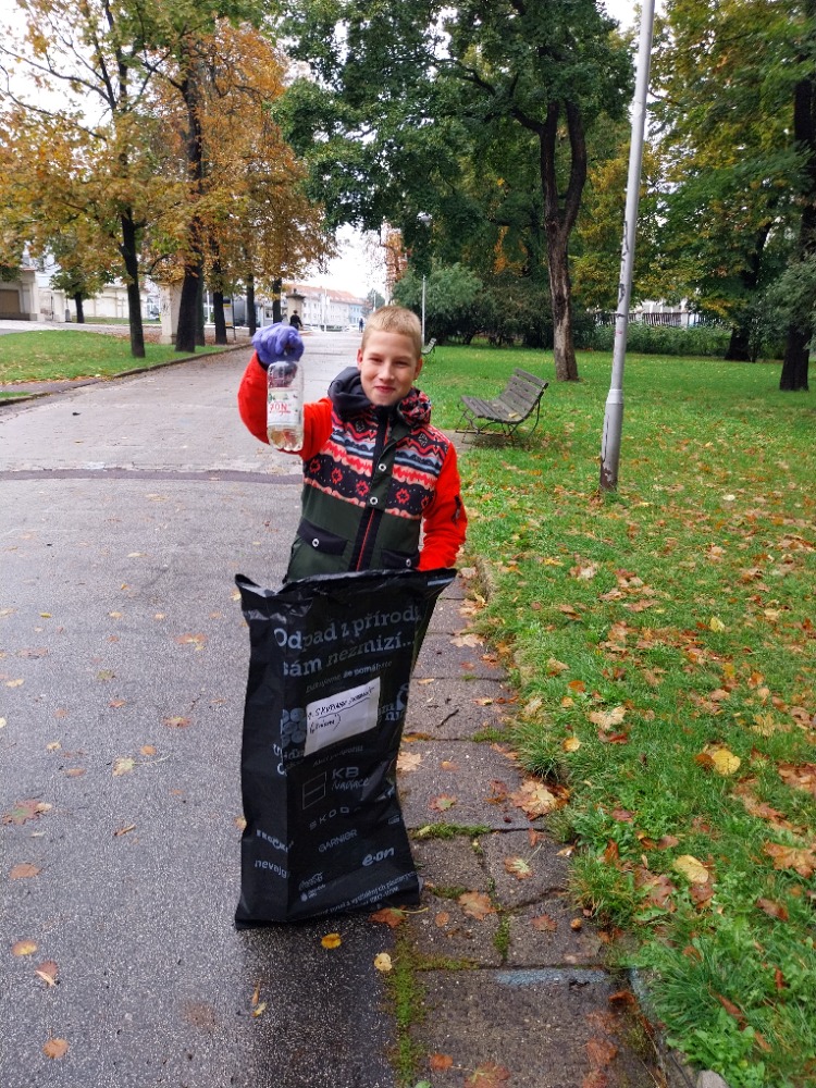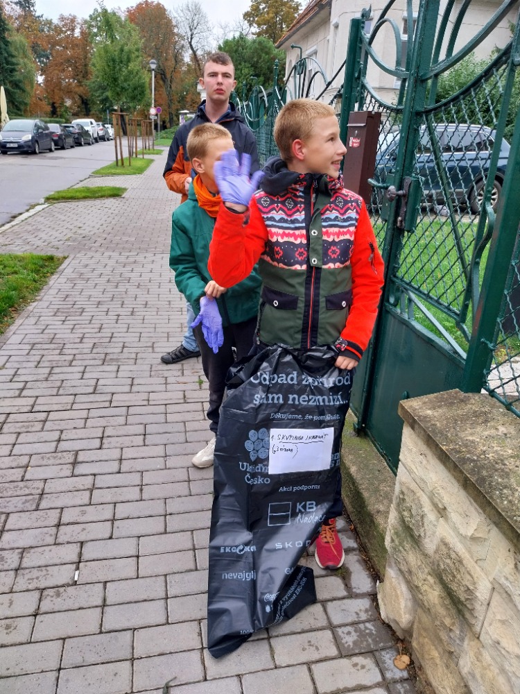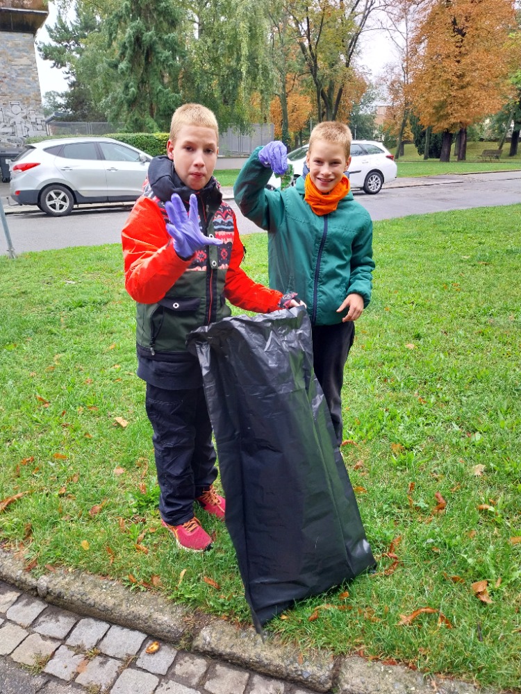 Prošli jsme se s žáky po parcích a posbírali odhozené odpadky na travnatých plochách a na chodnících