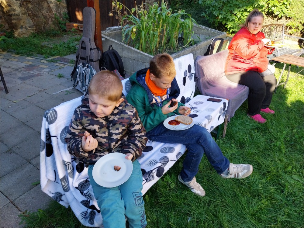 S žáky jsme navštívili školní zahradu, kde si celý internát opekl špekáčky a zazpívali jsme si s kytarovým doprovodem