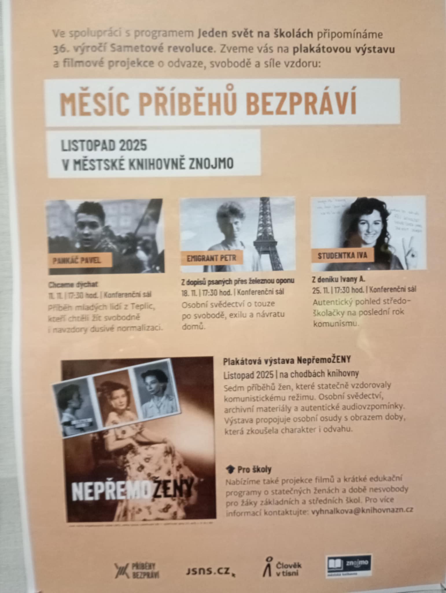 Měsíc příběhů bezpráví- ve spolupráci - Jeden svět na školách - navštěvujeme v měsíci listopadu knihovnu ve Znojmě a připomínáme si tak 36. výročí Sametové revoluce.