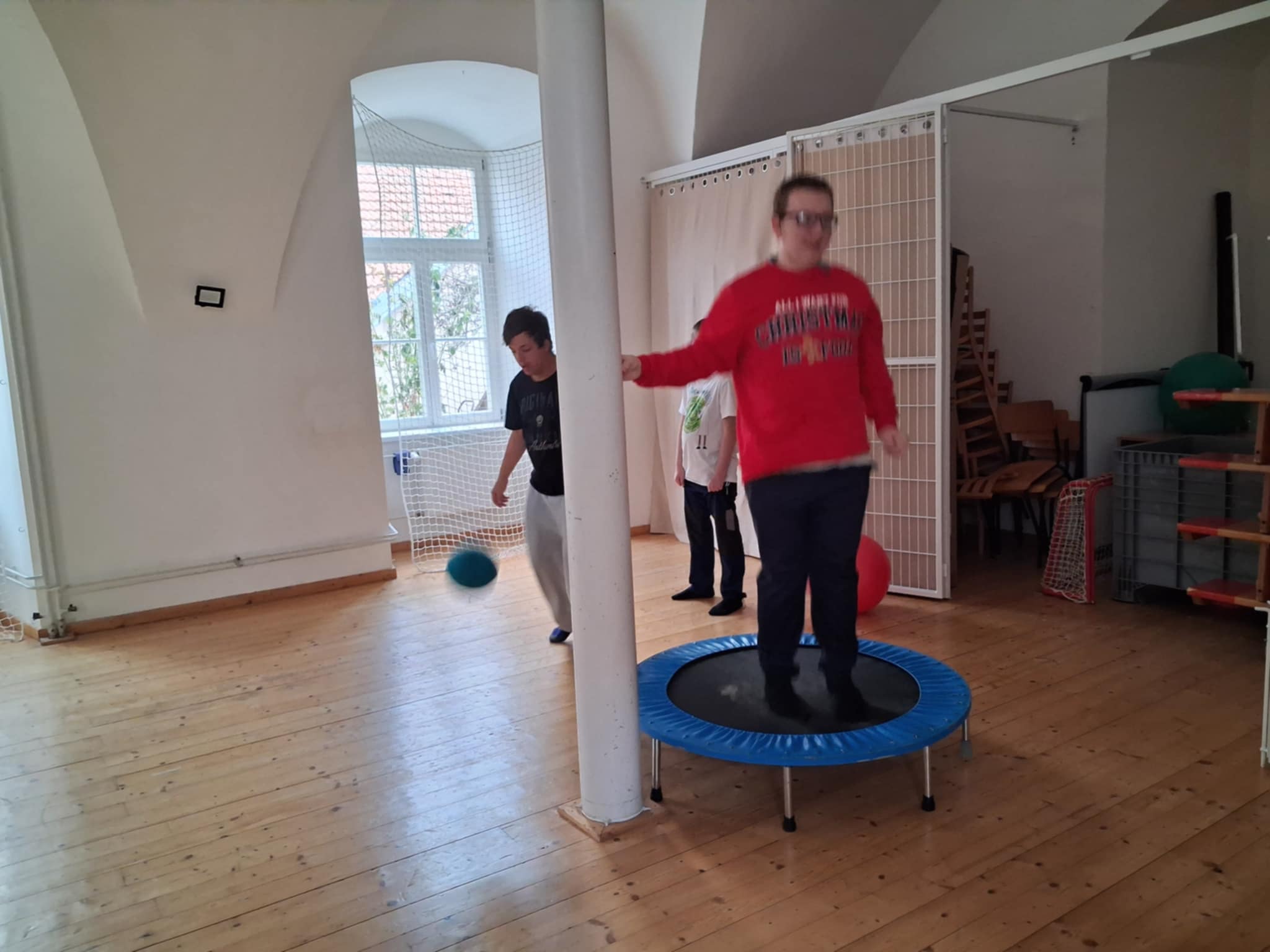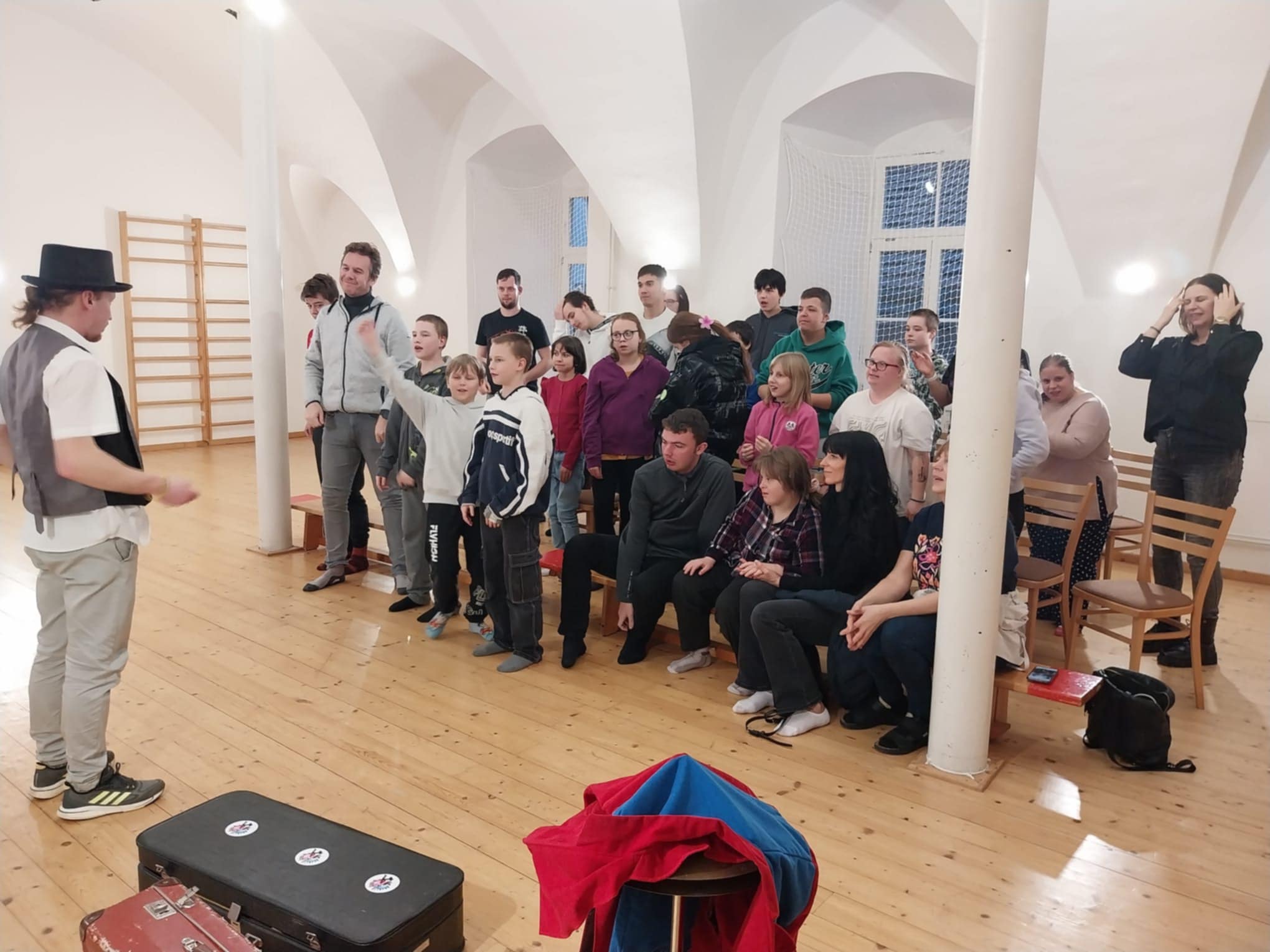 Zobrazit celou galeriiČabík - kejklíř v tělocvičně naší školy