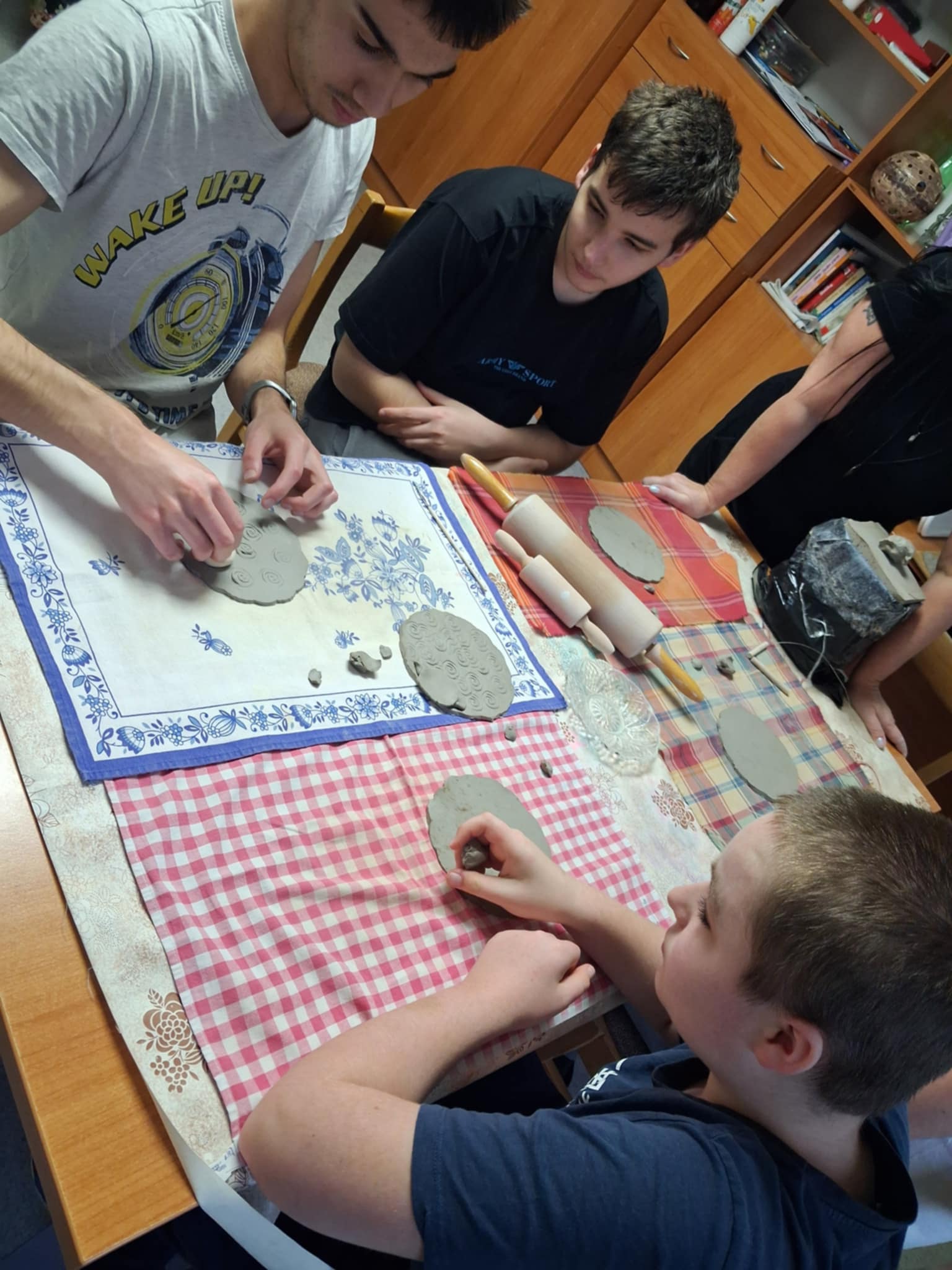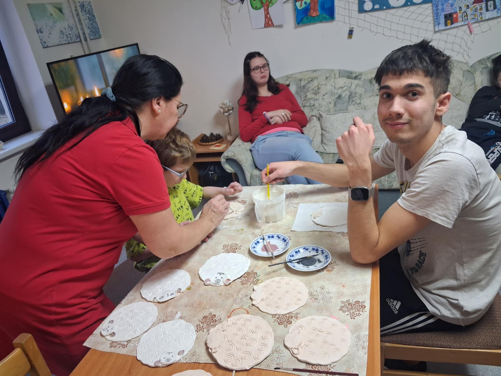 Velmi rádi tvoříme z keramické hlíny krásné dárečky pro maminky nebo na školní jarmarky. Práce s keramickou hlínou nás zklidňuje, je aktivizační a přínosná. Spousta krásných dekorací takto vzniká v rámci volnočasových aktivit.