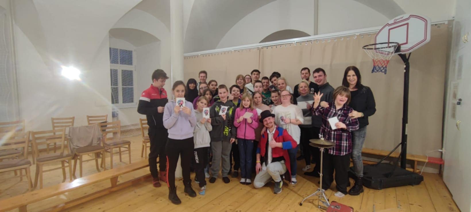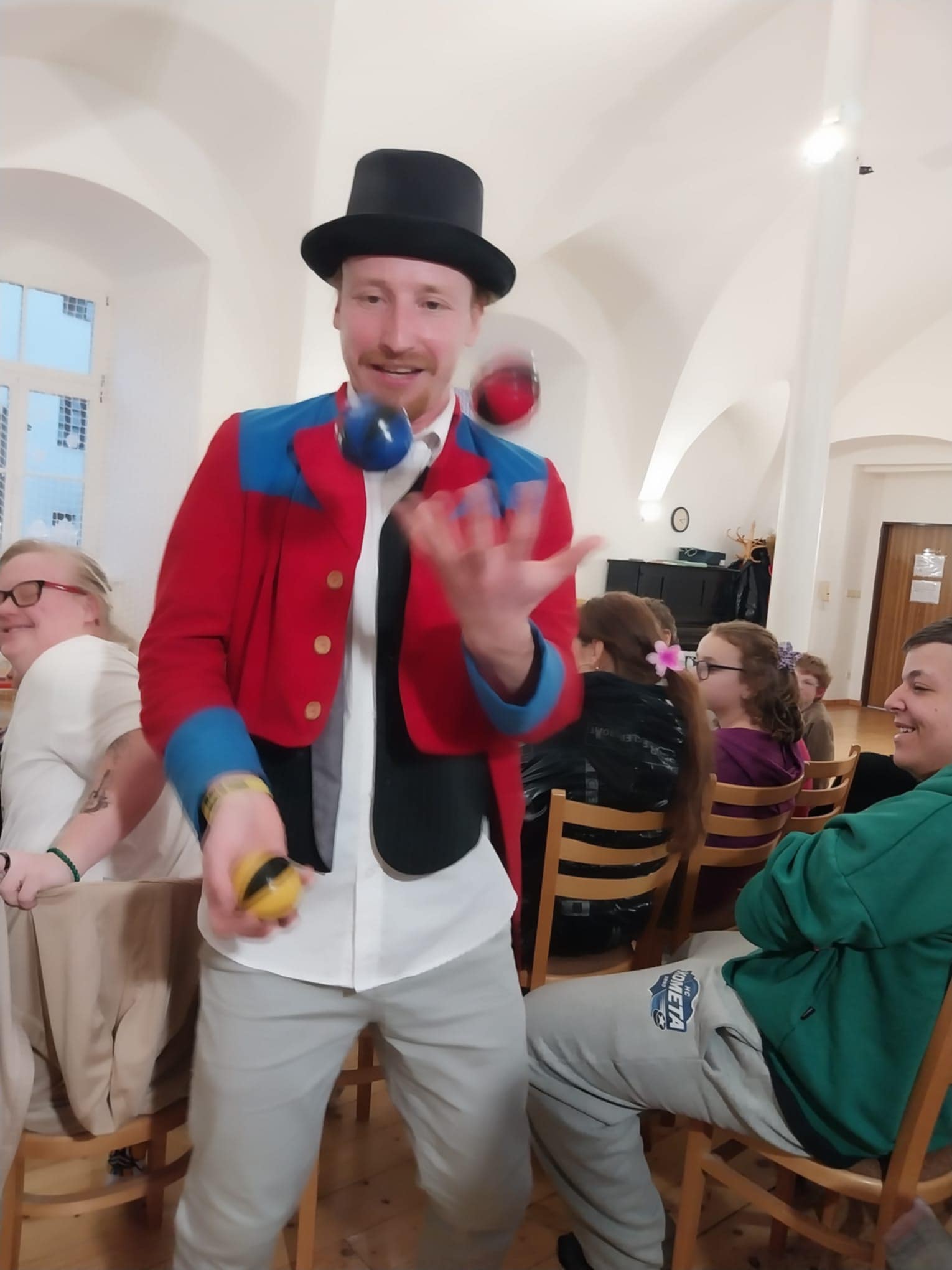 Čabík - kejklíř v tělocvičně naší školy