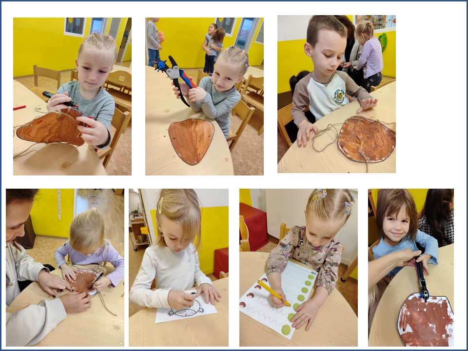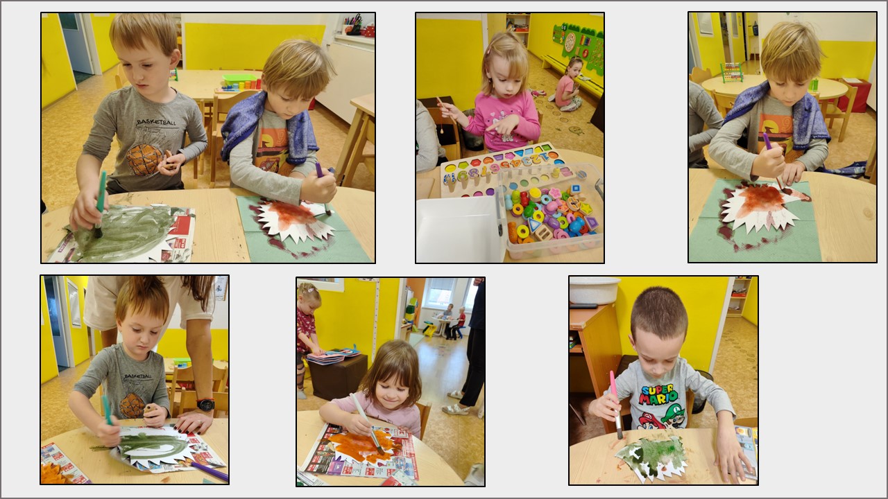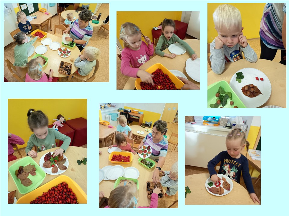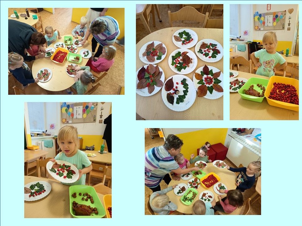 I touto formou občas probíhá u nás ve třídě logopedie s paní učitelkou Šárkou - při tvoření s přírodninami podle projektu EVVO dětí rozvíjejí pasivní a aktivní slovní zásobu, jemnou motoriku i pozornost.