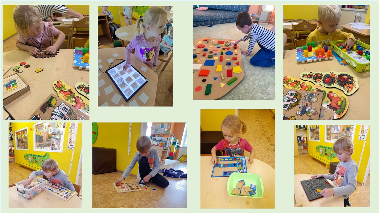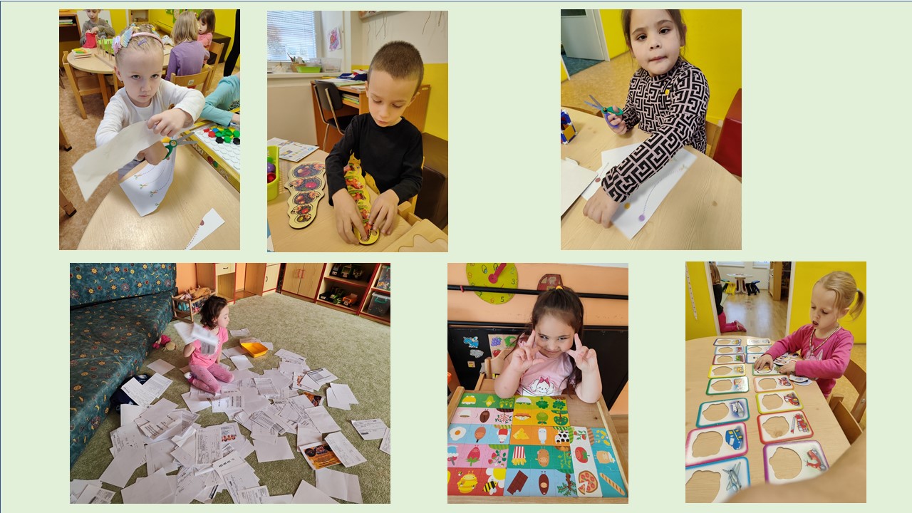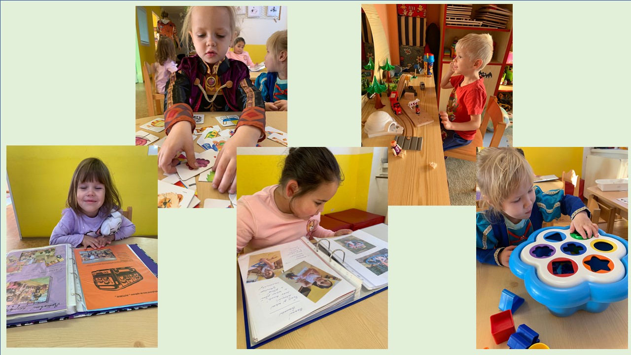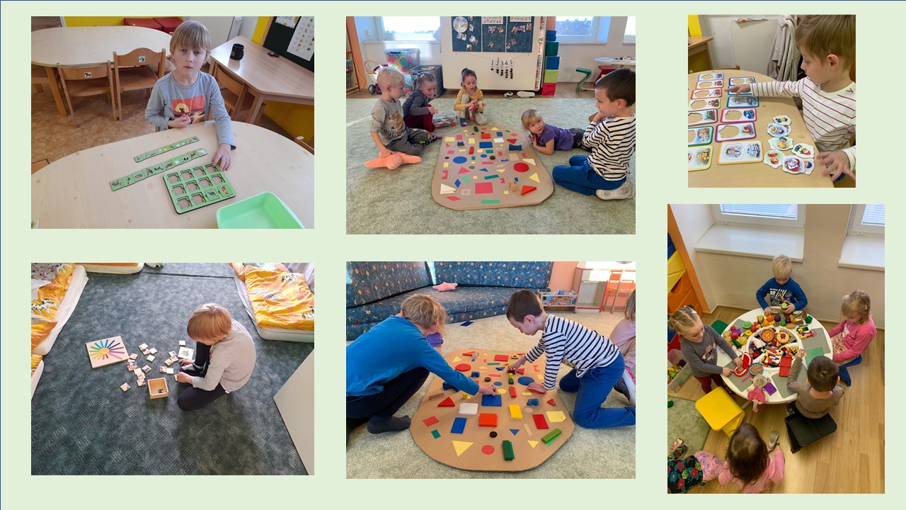 I touto formou občas probíhá u nás ve třídě logopedie s paní učitelkou Šárkou - při tvoření s přírodninami podle projektu EVVO dětí rozvíjejí pasivní a aktivní slovní zásobu, jemnou motoriku i pozornost.