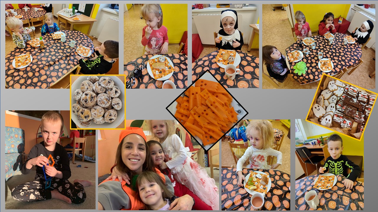 Celý týden jsme si užívali strašidelně veselou atmosféru plnou her, učení, ochutnávání, tvoření a kouzelných převleků. Rodičům mockrát děkujeme za všechny dobroty, které nám přinesli.