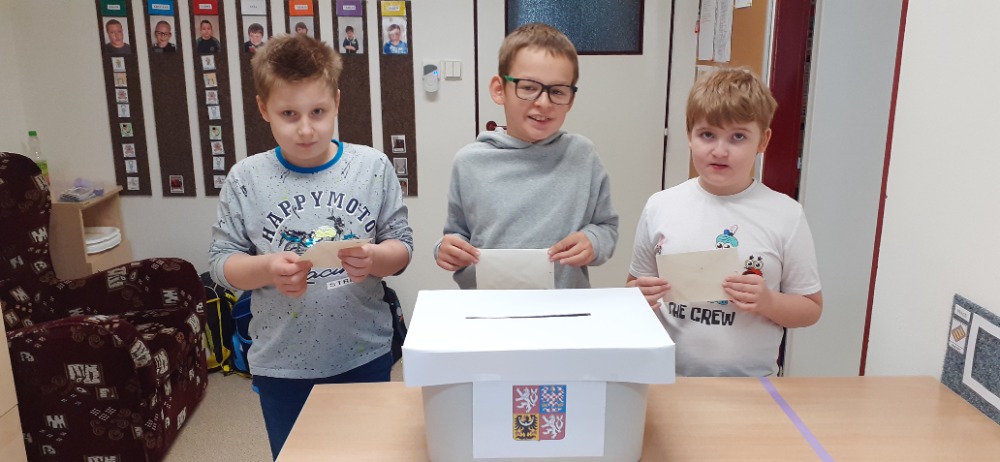 13. 10. 2025 Žáci plnili celoškolní projekt Výchovy demokratického občana na téma: "Volby v demokratické společnosti". Volili si nejoblíbenější pohádku. Mladší žáci vybarvovali vlajku a omalovánku.