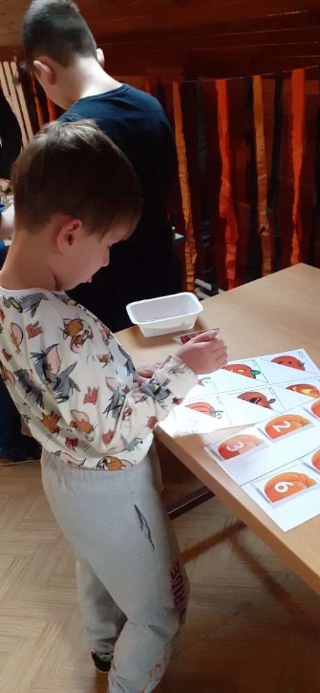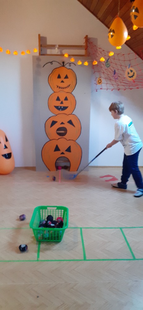 V tělocvičně na Veselé žáci plnili různé úkoly s haloweenskou tematikou. Za splněné úkoly dostali sladkou odměnu.